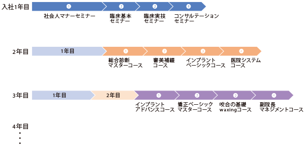1年目、2年目、3年目と進むにつれて内容が専門的になり、自分の診療の幅の広がりとともに内容もステップアップしていきます。